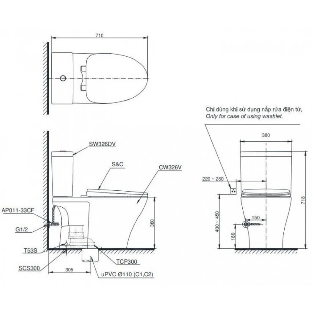 Bàn Cầu TOTO CS326DE4 2 Khối Nắp Cơ TCW1211A