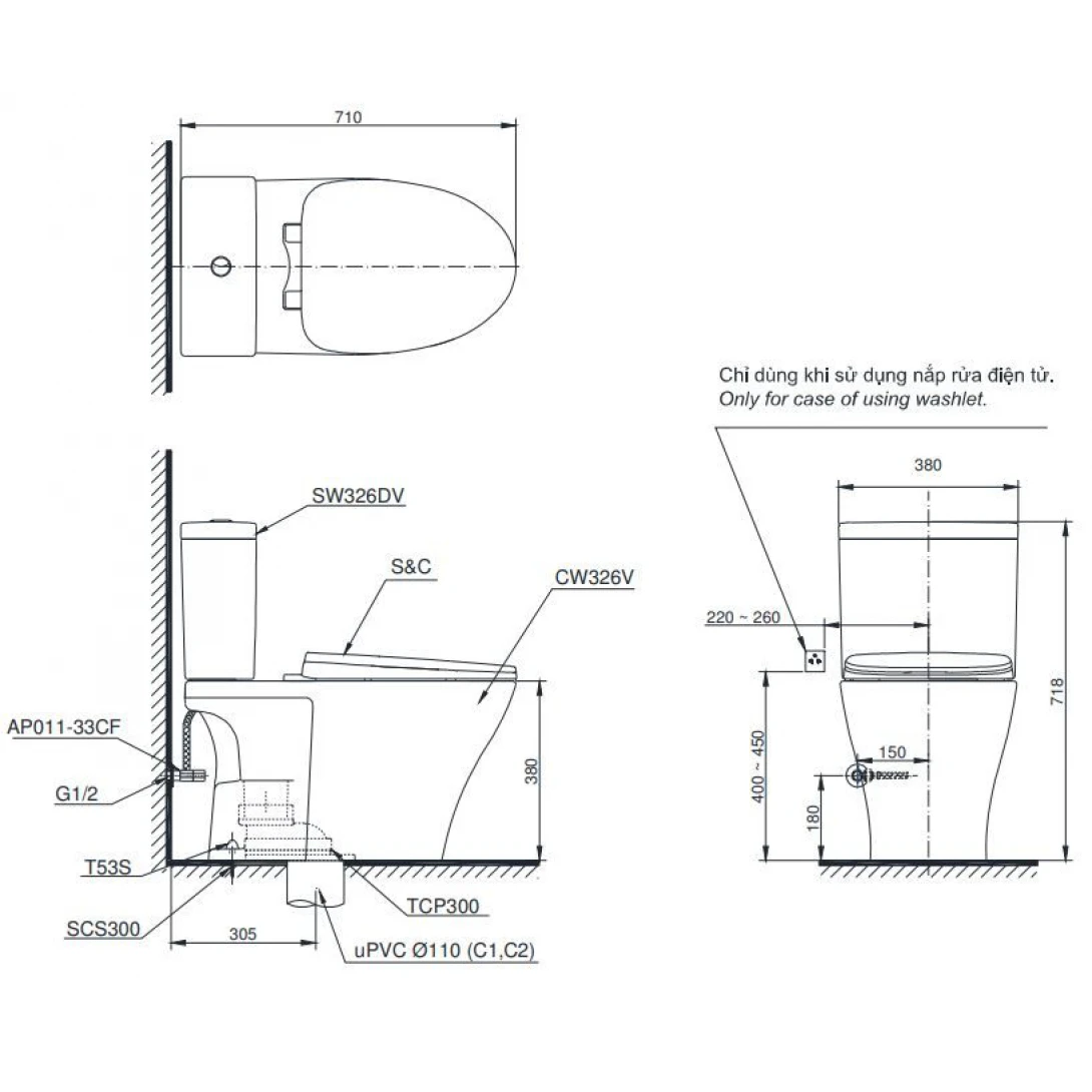 Bồn Cầu 2 Khối TOTO CS326DT10 Nắp Êm TC395VS