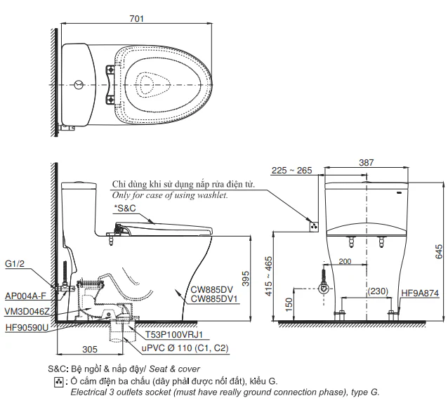 Bồn Cầu TOTO MS885DT2 Một Khối Nắp TC393VS