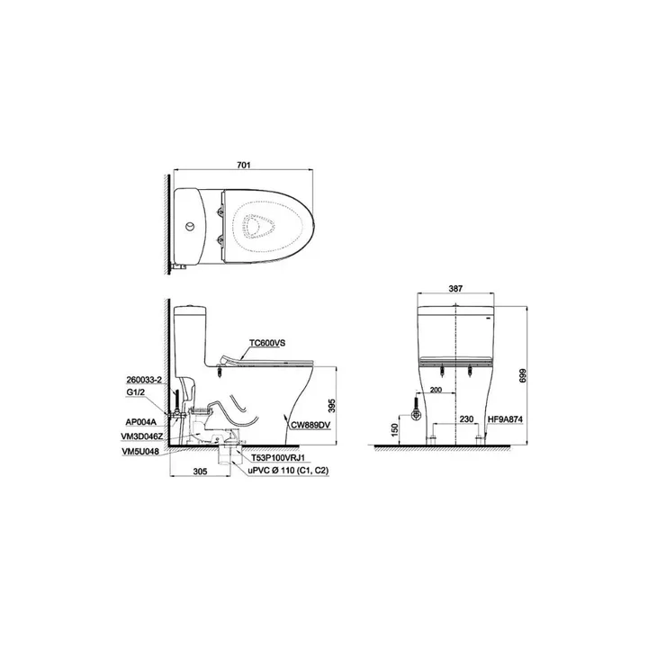 Bồn Cầu TOTO MS885DT8 Một Khối Nắp TC600VS