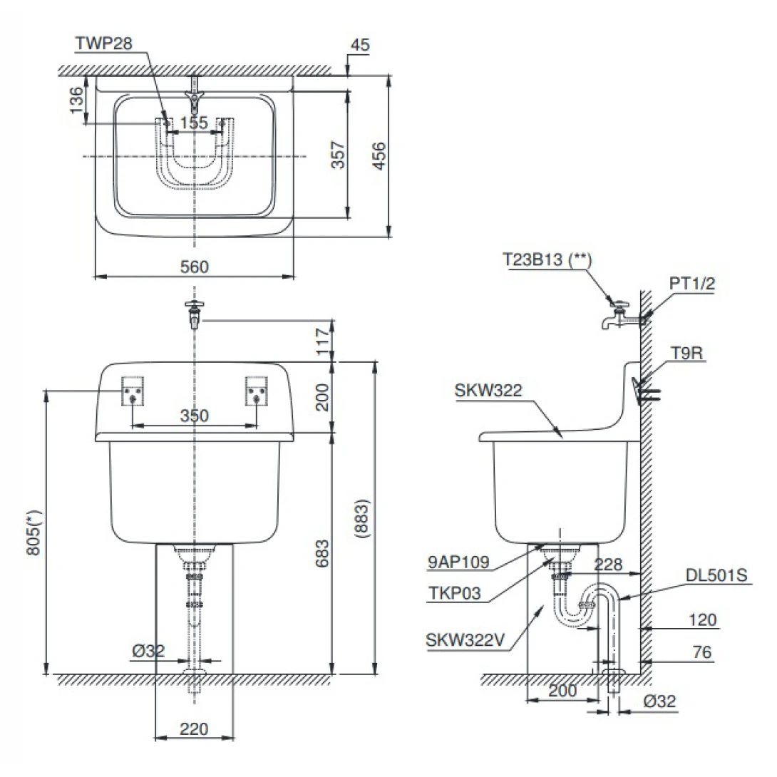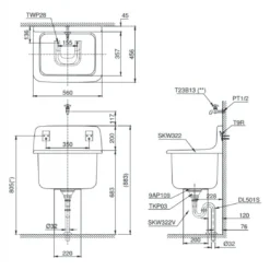 Bản vẽ chậu sứ TOTO SK322#W SK322F#W